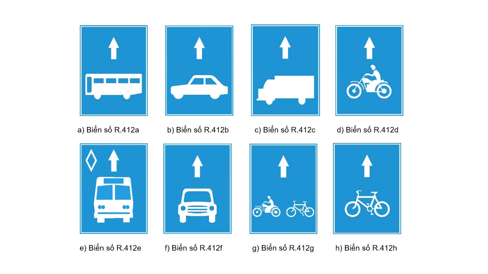 - Biển báo nguy hiểm và cảnh báo và biển chỉ dẫn: Có giá trị trên các làn đường của chiều xe chạy.